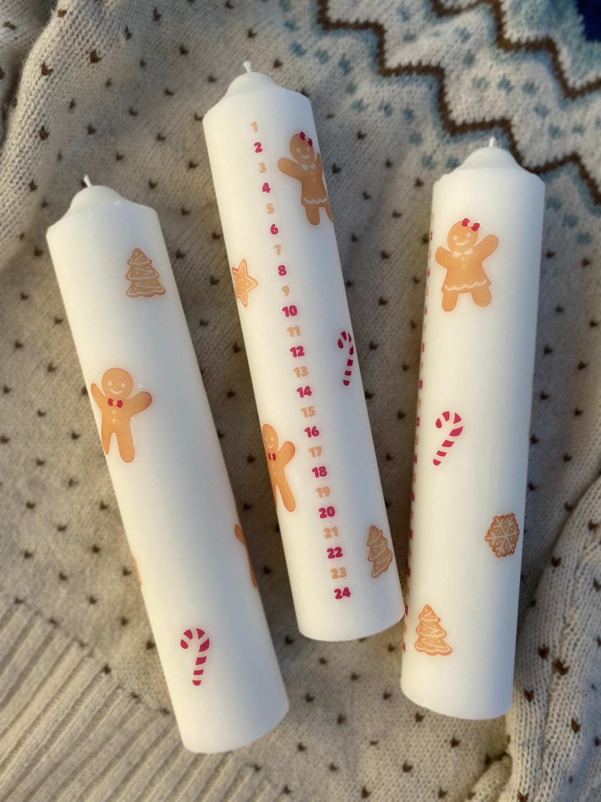 Start the christmas countdown in style with this hand-decorated calendar candle with gingerbread motives. Light the candle every day from 1 to 24 december and count down the days to most favourite celebration of the year- Christmas!