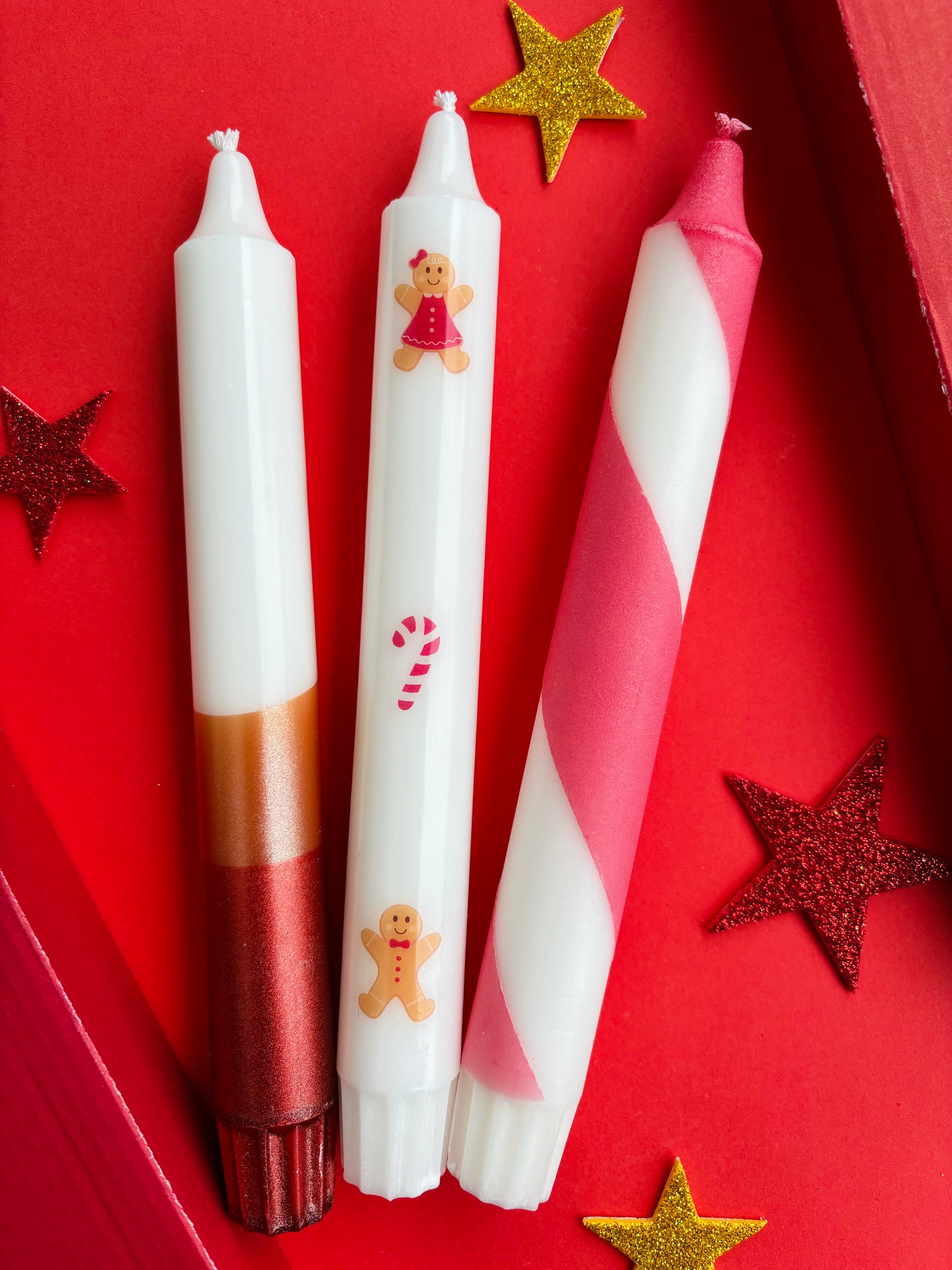 Set the christmas mood with these hand-decorated candles with gingerbreadman details. A stunning 3-pack that brings winter wonderland into your home.