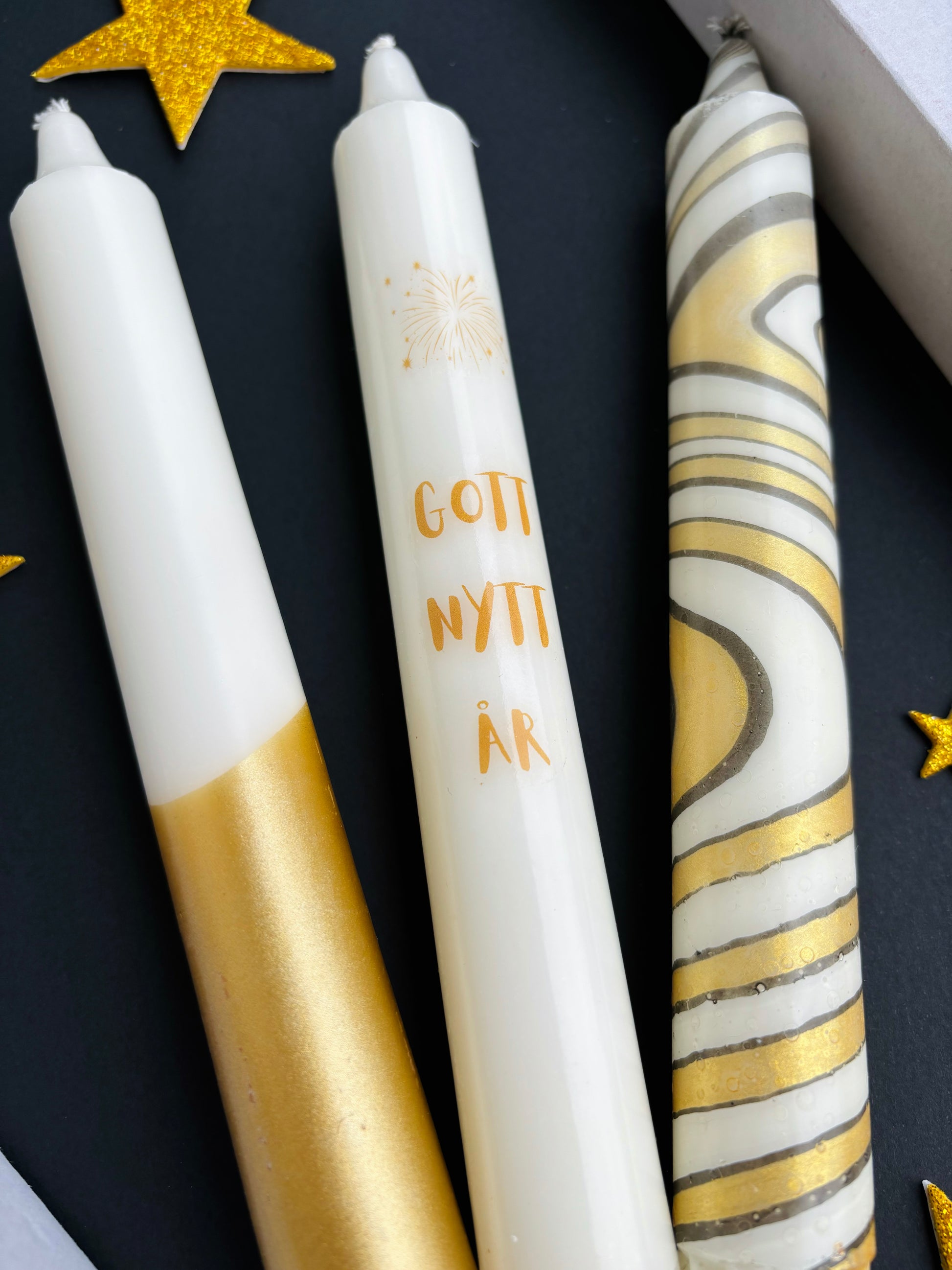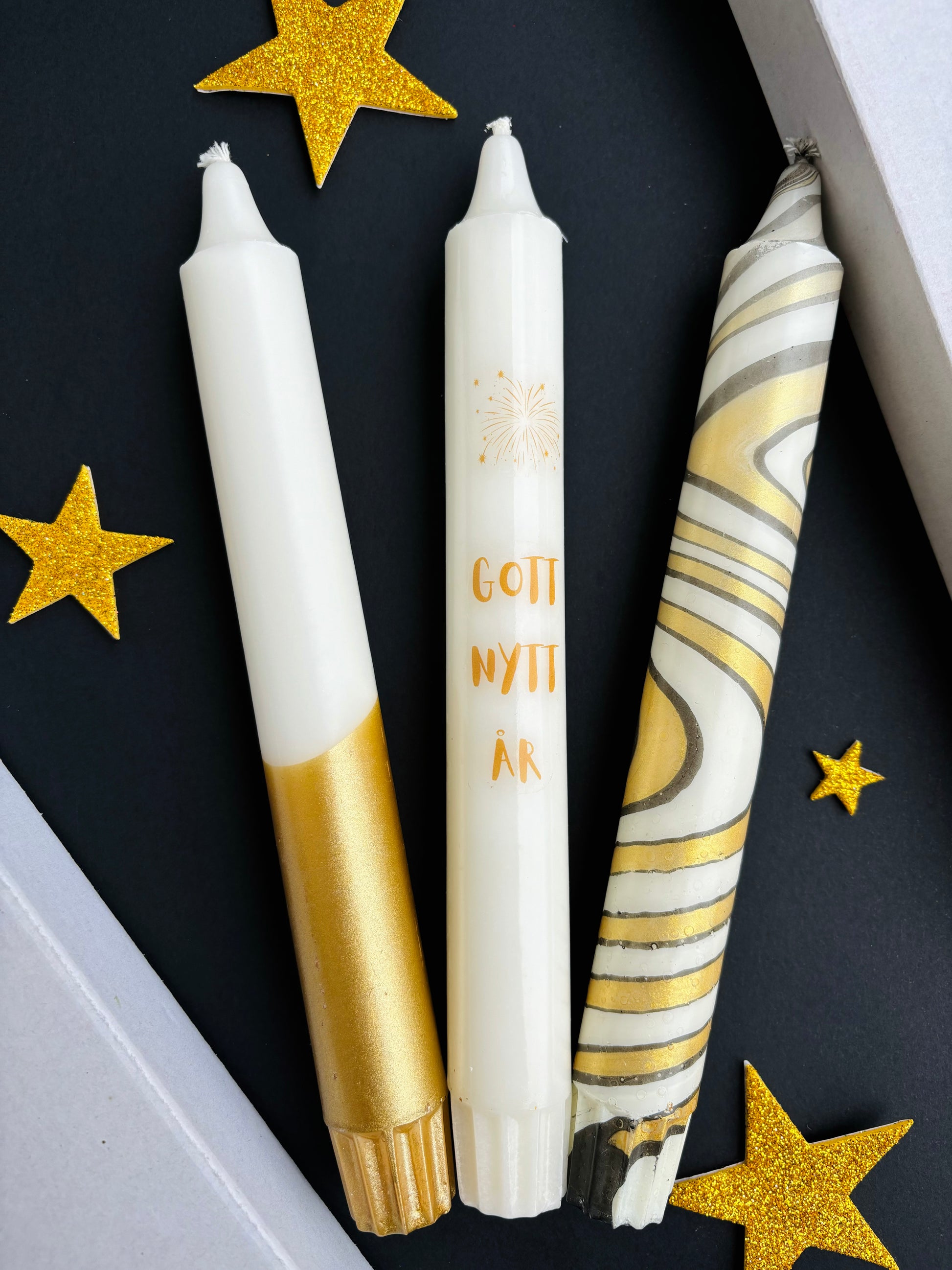 Welcome the new year in a style with these hand-decorated candles with shiny details. A stunning 3-pack that brings joy and warmth into your home.