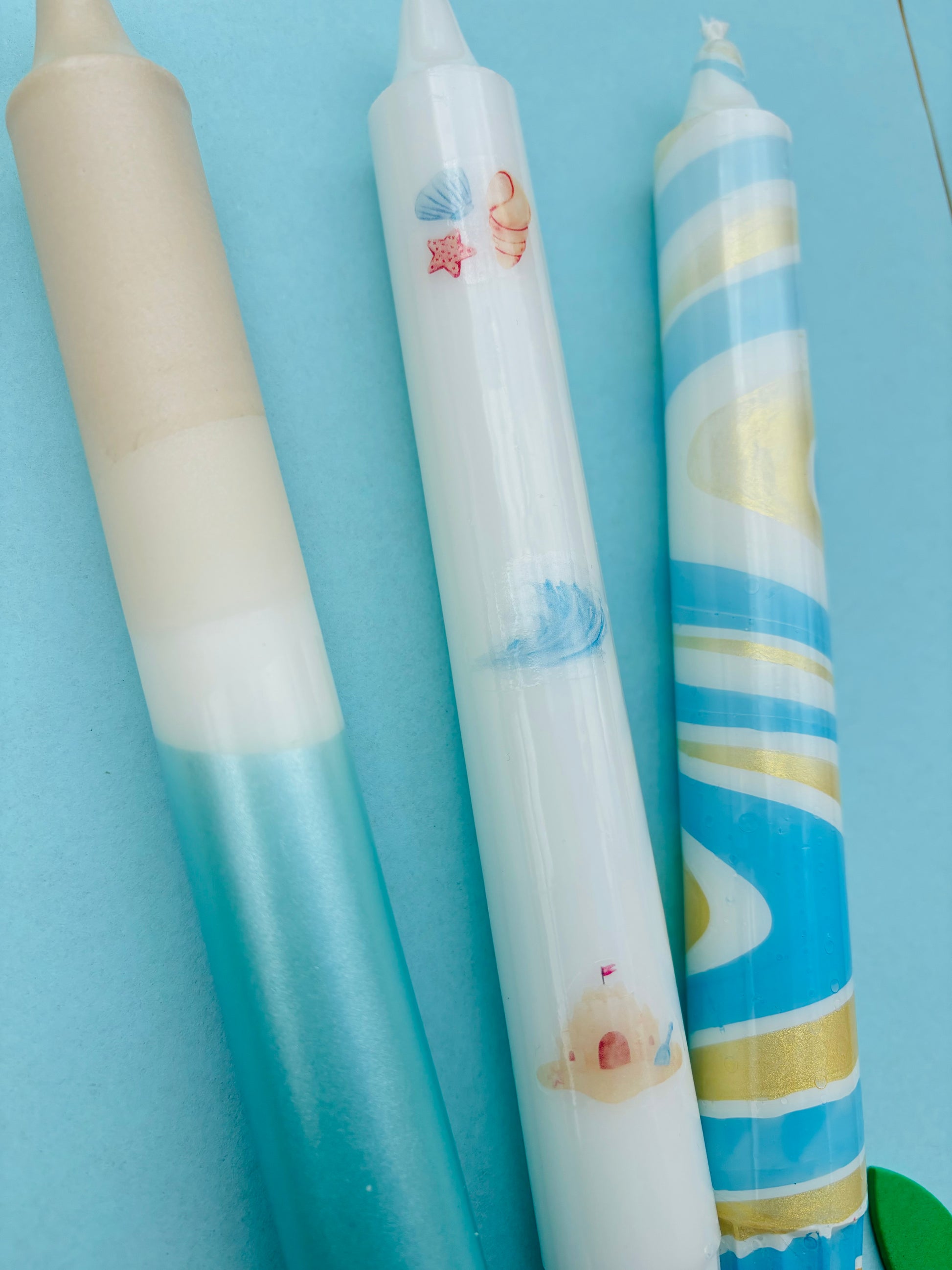 PLEASE NOTE that my candles are hand-decorated, so slight variations in the patterns and their placement may occur.