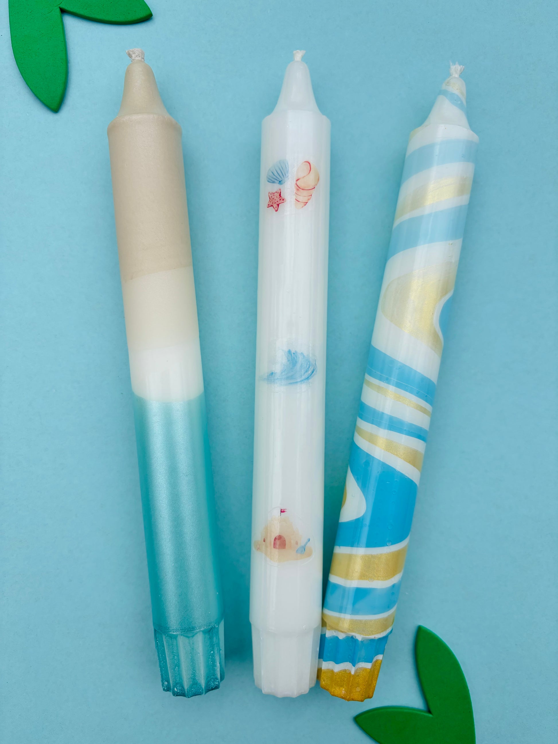 1x Beige/Shiny Blue DIP DYE CANDLE