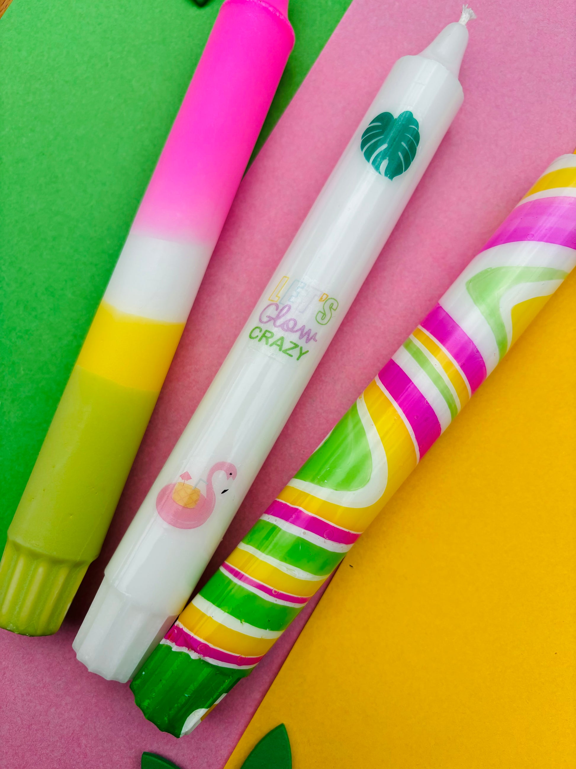 PLEASE NOTE that my candles are hand-decorated, so slight variations in the patterns and their placement may occur.